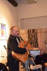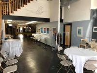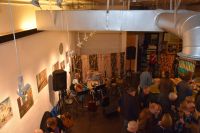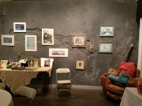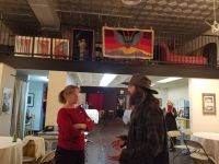 The setup crew was so much help, Terence helped to coordinate the whole setup, and our Colorado crew helped to knocked it out, with Coral, Casey, Ceirra hanging art, James, Matthew, Charlie, Nathan, Kyle, and Michael setting up tables and chairs, Liz and Betty coordinating the food area. David Steely setting up the sound, Karen Hardwick bringing tasty treats, and others bringing in food throughout the night.Randy Moore sent a beautiful bouquet, and Trudy brought some flowers for the tables…. and the stage was set!